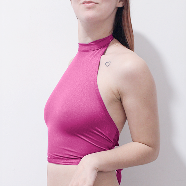 El top Spectra de cuello alto aporta un aire futurista, elegante y vibrante. Ideal para combinar con la braguita Spectra y destacar en la playa o piscina.